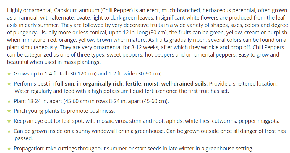 Capsicum annuum is a species of the plant genus Capsicum native to southern North America, the Caribbean, and northern South America. This species is the most common and extensively cultivated of the five domesticated capsicums. The species encompasses a wide variety of shapes and sizes of peppers, both mild and hot, such as bell peppers, jalapeños, New Mexico chile, and cayenne peppers. Cultivars descended from the wild American bird pepper are still found in warmer regions of the Americas. In the past, some woody forms of this species have been called C. frutescens, but the features that were used to distinguish those forms appear in many populations of C. annuum and are not consistently recognizable features in C. frutescens species.