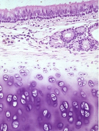 气管壁由黏膜、黏膜下层和外膜组成,外膜内有不闭合的U形软骨环。支气管的结构与气管基本相同。