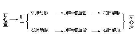 肺循环的血管起自右心室的肺动脉,肺动脉输送血液分别到左、右两肺,反复分支与肺泡壁的毛细血管相接,再汇流经肺静脉流入左心房,称此为肺循环。