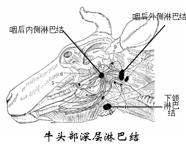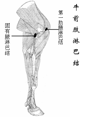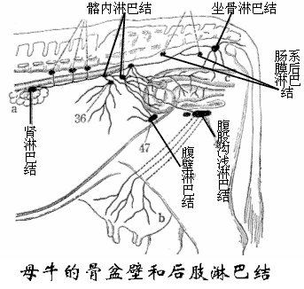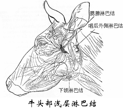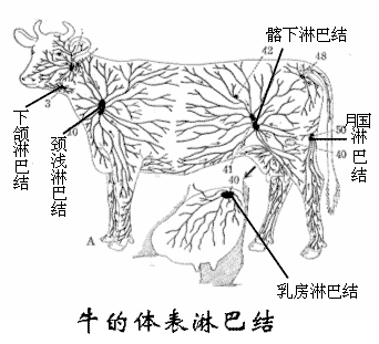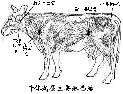 阴囊淋巴结:公牛精索后上方、阴茎背侧。