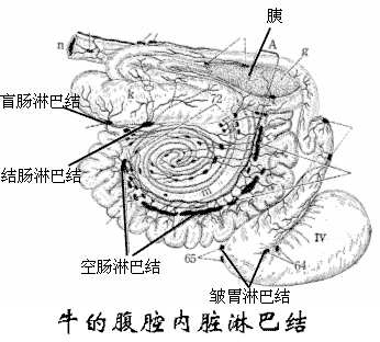 主要有肠系膜前淋巴结、空肠淋巴结、盲肠淋巴结和结肠淋巴结。