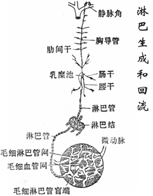 毛细淋巴管为淋巴管的起始段,以盲端起于组织间隙,并彼此吻合成网。以盲端起始于组织间隙,其结构似毛细血管,相邻内皮细胞以叠瓦状排列。管径和通透性高于毛细血管,因此一些不能透过毛细血管壁的大分子的蛋白质、病毒、细菌、癌细胞可由此进入毛细淋巴管,之后汇入血液并循环至全身各处。