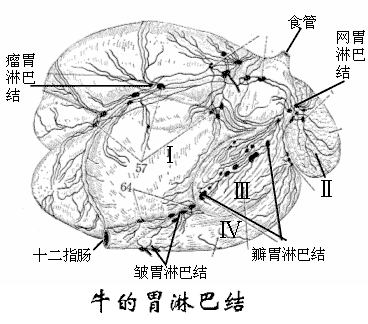血淋巴结较小,卵圆形或圆形,呈暗红色,一般分布于主动脉径路上、瘤胃表面、皮下等处。