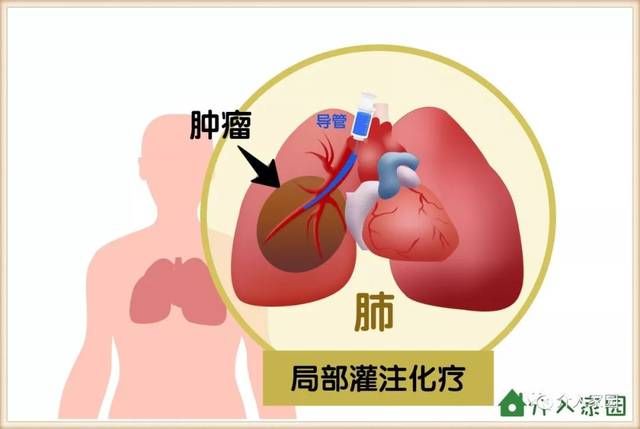 全身化疗是对付肿瘤很常用的办法,但是,全身化疗所带来的副反应也同样让患者痛苦不堪。有没有什么方法既可以对付肿瘤,又能让患者不那么痛苦呢?那就是局部灌注化疗!特别适合于局限生长的肿瘤。介入医生可以将一根很细的特制导管在影像设备的引导下插到肿瘤的供血动脉,再通过导管直接往肿瘤里注入化疗药物。