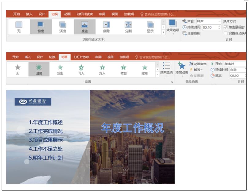 任务7:年度汇报演示文稿的幻灯片切换设置。