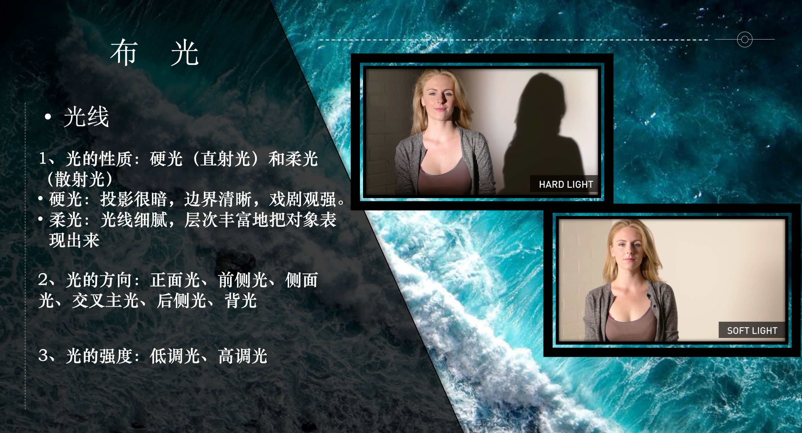 1、 光的性质:硬光(直射光)与柔光(散射光)。