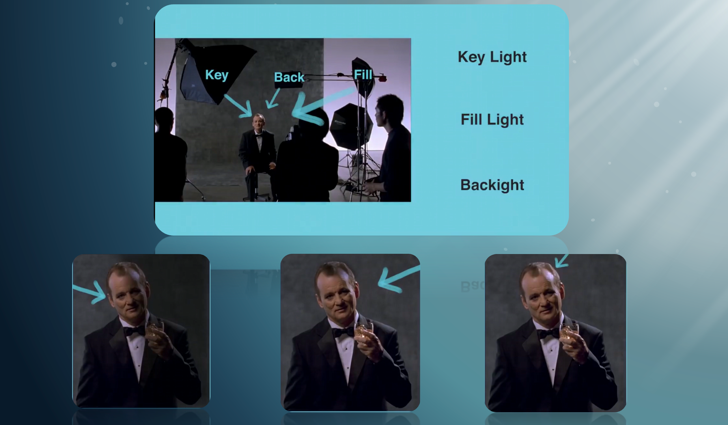 1. 三点布光是好莱坞经典的标志。使用主光、补充光和背景光。这三种光源可以以任何形式呈现。影视灯、太阳光甚至拍摄现场的台灯。