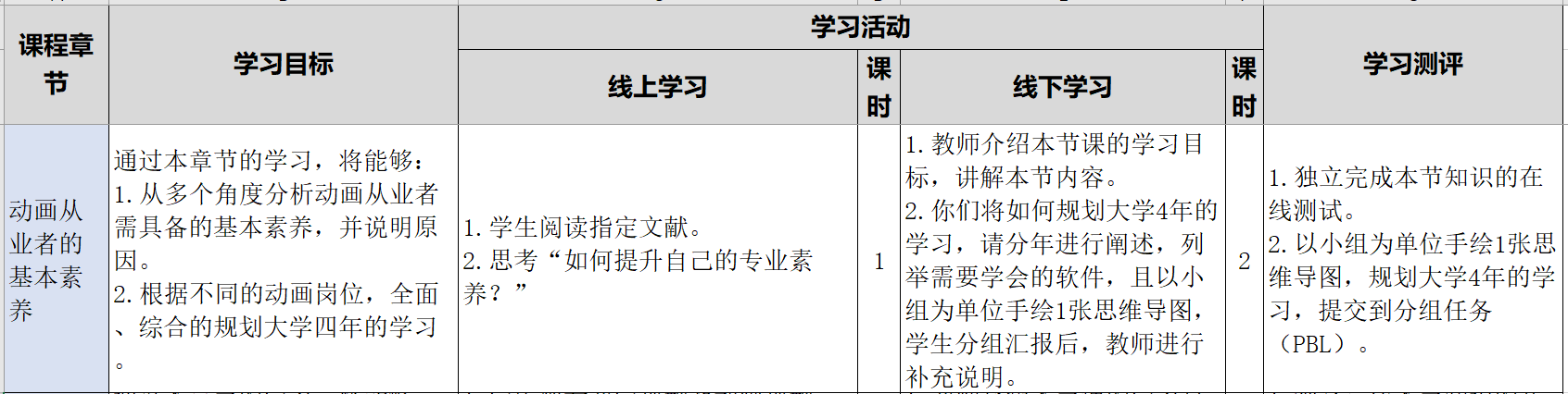 根据不同的动画岗位,全面、综合的规划大学四年的学习。