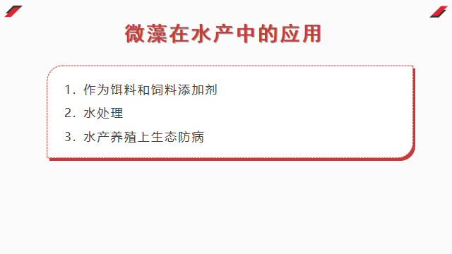 微藻可以作为饵料,应用于水产动物育苗阶段。