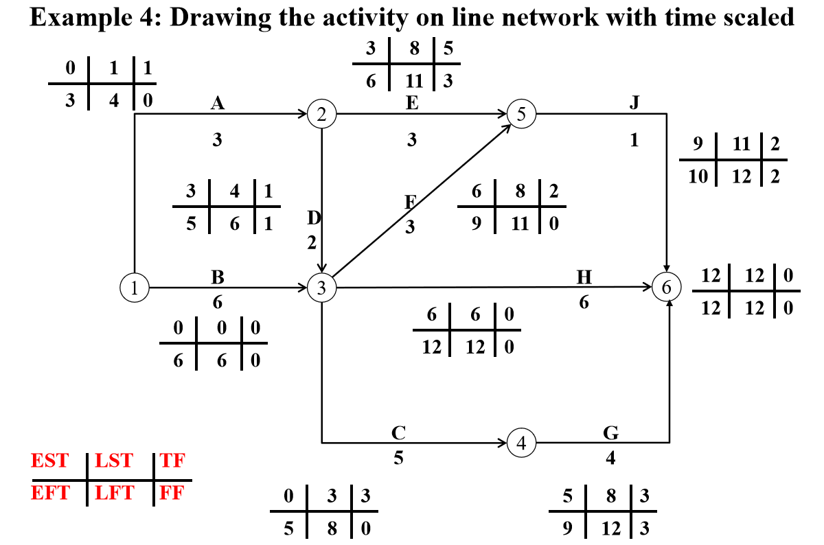 Activity on line network plan with time scaled