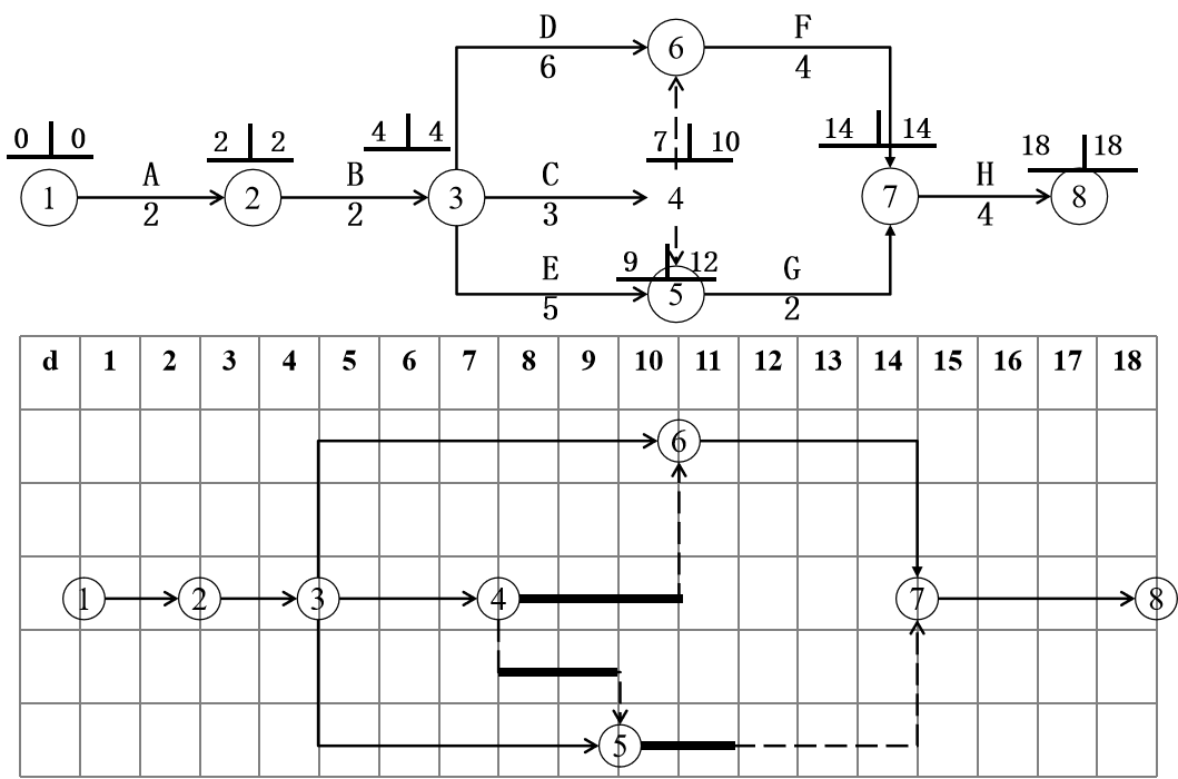 9.5 Activity on line network plan with time scaled