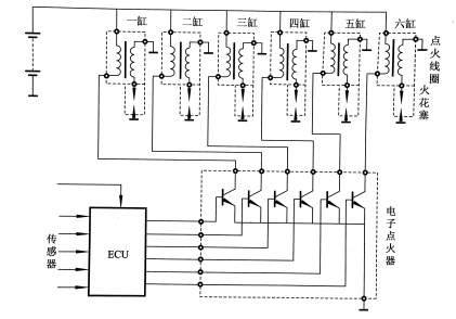 送至各缸火花塞。这种配电方式存在许多不足之处,如产生点火能量损失、无线电干扰以及