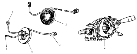 电喇叭线束也安装在螺旋弹簧内,螺旋弹簧安装在转向盘与转向柱之间,安装时应注意其安装的位置和方向,否则将导致螺旋线束和电喇叭线束折断、转向盘转向角度不足或转向沉重。