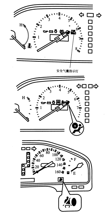 驾驶员可通过指示灯来判断安全气囊系统是否有故障。如果发现安全气囊系统故障,则