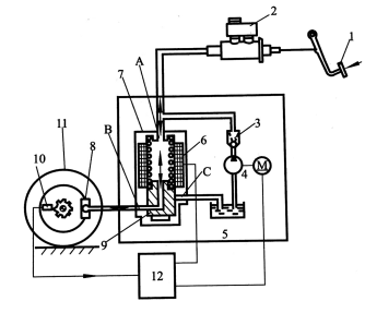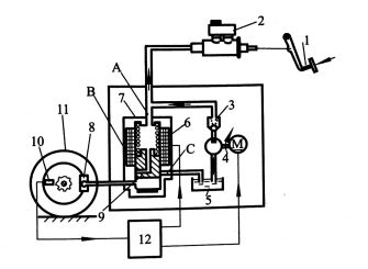 8一轮缸;9一柱塞;10-传感器;11一车轮;12-ECU