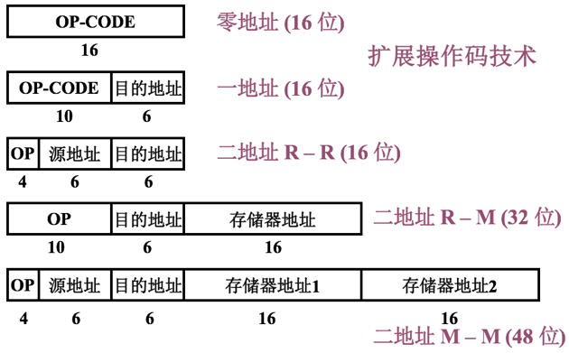 PDP – 11指令字长有16位、32位和48位三种,下图列出了其中五种指令格式。