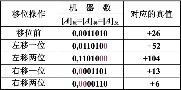 原码的移位结果如下表所示。