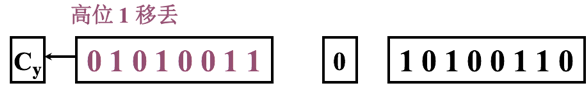 上例中为了避免算术左移时最高数位丢1,可采用带进位(Cy)的移位,其示意图如下图所示。算术左移时,符号位移至,最高位就可避免移丢。