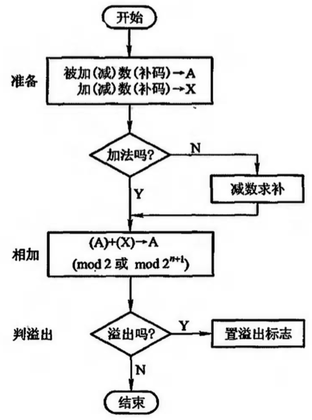 补码加减运算控制流程如下图所示。