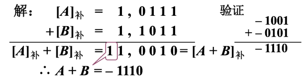 例2:设A= –9,B= –5,求[A+ B]补。