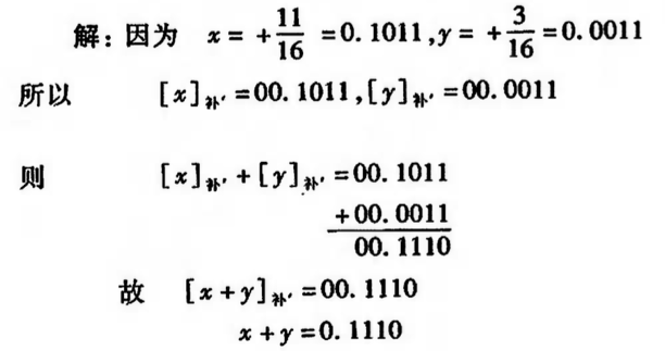 例1:已知A= 0.1011,B= – 0.0101,求[A+ B]补。