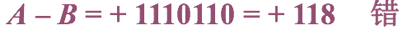 按模2n+1的意义,最左边的“1”自然丢掉,故[A-B]补=0,1110110,还原成真值得A–B=119,结果出错,这是因为A–B=-138超出了机器字长所能表示的范围。在计算机中,这种超出机器字长的现象叫溢出。为此,在补码定点加减运算过程中,必须对结果是否溢出做出明确的判断。
