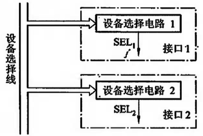 由于I/O总线与所有设备的接口电路相连,但CPU究竟选择哪台设备,还得通过设备选择线上的设备码来确定。该设备码将送至所有设备的接口,因此,要求每个接口都必须具有选址功能,即当设备选择线上的设备码与本设备码相符时,应发出设备选中信号SEL,这种功能可通过接口内的设备选择电路来实现。