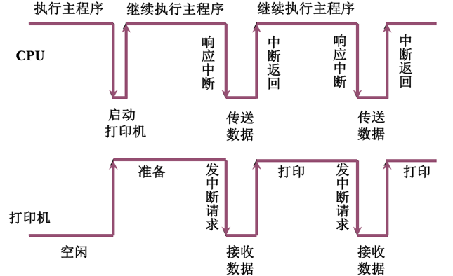 下图所示为由打印机引起的I/O中断时,CPU与打印机并行工作的时间示意图。