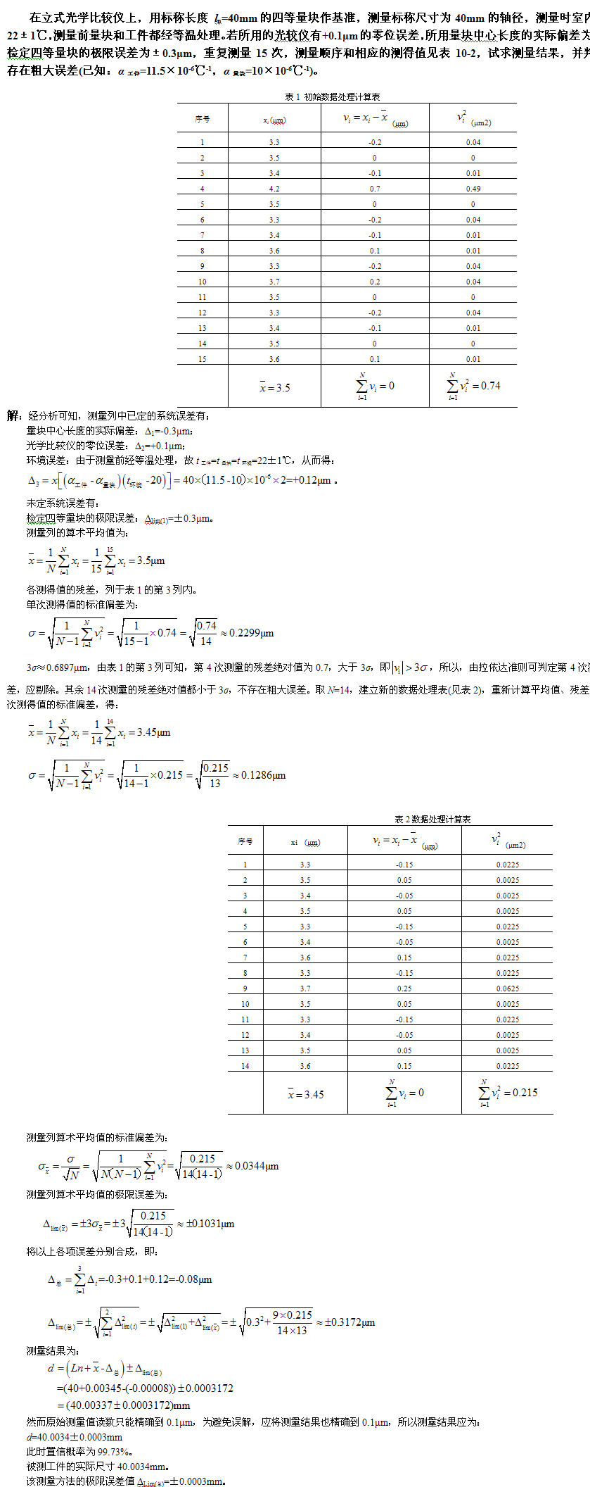 2)采用上述量块组合,用正常方法测量,将0.002mm是为系统误差,对测量值进行修订,即比较仪示值减去0.002mm作为25.387mm的相对测量值。