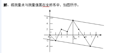 6-4 如图所示,用指示表测量导轨的直线度误差,指示表上读得的示值列于表中,试按最小条件评定直线度误差值。