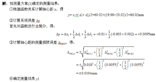 从以上三种测量方案的测量结果可知,测量方案(3)的测量误差最小,测量方案(1)的最大,这表明测量方案(3)的量精度最高,量方案(1的测量精度最低。再者,测量方案(1)要测三个参数,其中内尺寸n的测量精度较难保证。因此,合理选择测量方案是提高是精度的重要手段之一。