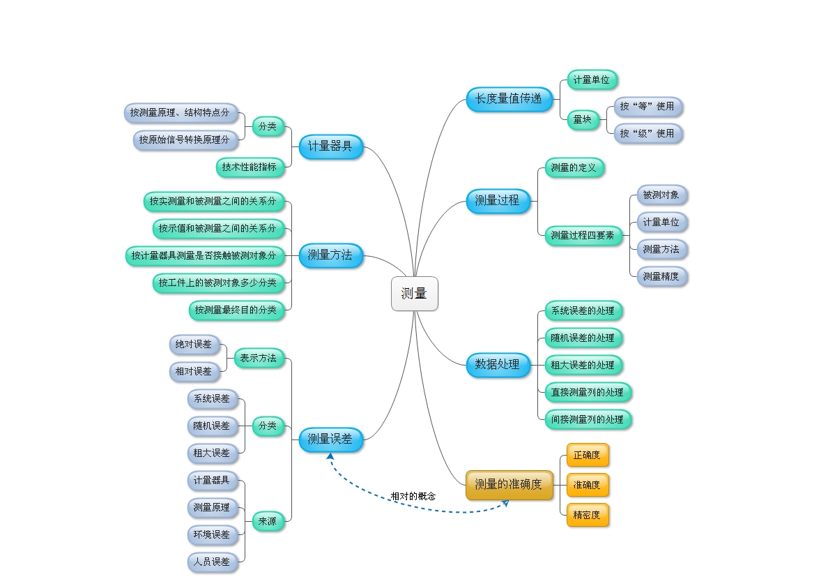 理解有关”测量”的概念和测量过程四要素;了解长度量值传递系统;理解量块的基本知识;掌握各种测量方法的特点、测量器具的主要度量指标;了解测量误差的概念、来源及其分类,掌握随机误差的分布规律及其特性、测量结果的数据处理。