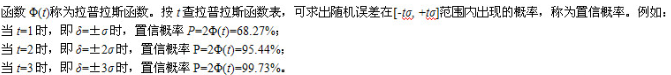 由概率论可知,随机误差正态分布曲线与横坐标轴所包围的面积等于所有随机误差出现的概率总和。如果随机误差落在区间(-,+)中,则其概率为: