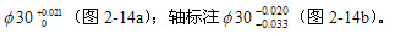 (2)配合代号及其在图样上的标注。配合代号由相互配合的孔和轴的公差带代号组成,用分数形式表示,分子是孔的公差带代号,分母是轴公差带代号。例如,H8/f8,S8/h7,H8/h8等。装配图上,在公称尺寸之后标注配合代号,例如,Φ30H7/f6(图2-14c)。