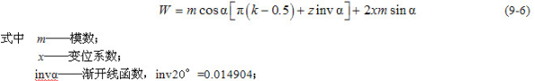 k——跨齿数(当a=20°时,k=z/9+0.5),计算出的k值通常不是整数,应将化整为最为接近的整数。