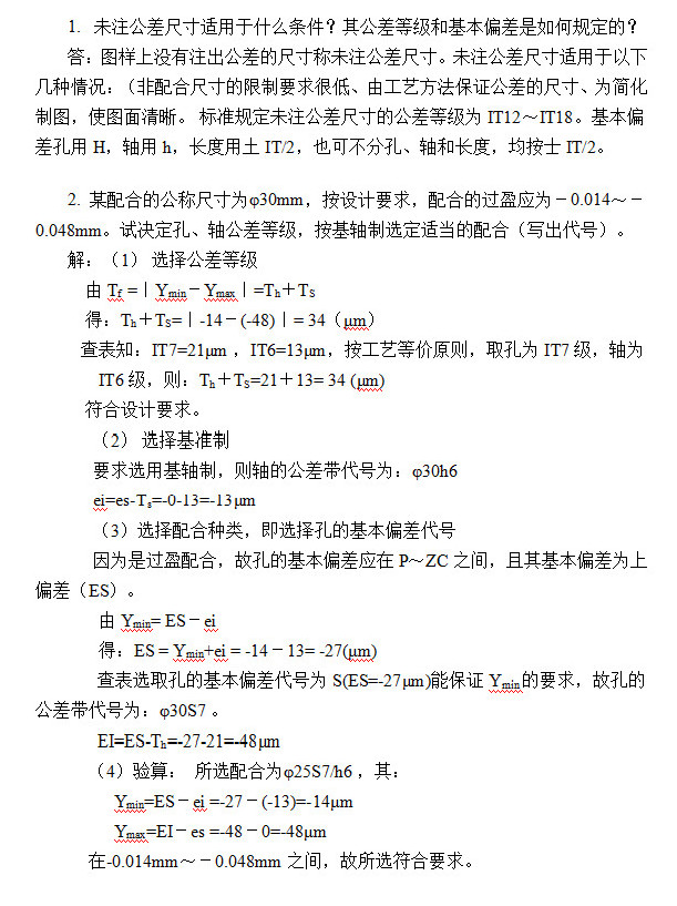 (5)对过盈配合,零件承受动载荷要比承受静载荷的过盈大些;对间隙配合,则零件承受动载荷德的间隙应小些。