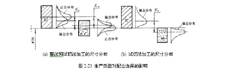 要比+12.5μm小得多,不能满足原设计要求。因此,为满足设计时Φ50H7/js6的要求,应考虑单件小批生产对配合性质的影响,此时,可选择Φ50H7/h6,如图2-23b所示。