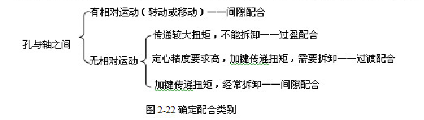 国标规定了间隙配合、过配合及过渡配合三大类配合。设计时究竟应选择哪一类配合,主要决定于使用要求,见图2-22。