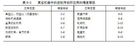 按照已有的经验资料与技术要求,参照同类产品的精度进行设计,是目前被广泛采用的方法。表9-3列出某些齿轮传动的经验数据,供设计时参考。