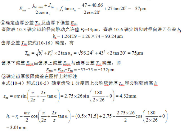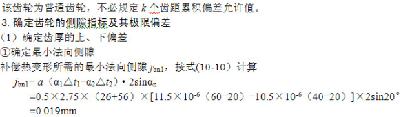 齿原上偏差可以根据齿轮的工作条件,确定齿轮副所需的最小侧蒙通过计算或类比法来的确定。齿原下偏差则按齿轮精度等级和加工齿轮时的径向进刀公差和几何偏心确定。齿轮精度等级和齿原极限偏差确定后,齿轮副的最大侧隙自然形成,一般不需验算。