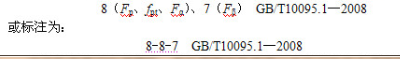 当齿轮传递运动准确性、传动平稳性及载荷分布均匀性的各项精度指标选取不同精度等级时,图样上可按其顺序分别标注其精度等级及括号的对应偏差允许值的符号和标准号,或分别标注它们的精度等级和标准号。例如,齿距累积总偏差允许值