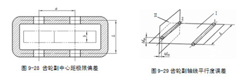 是指在箱体两侧轴承跨距L的范围内,齿轮副的两条轴线之间的实际距离(实际中心距)与公称中心距a之差,如图9-28所示。