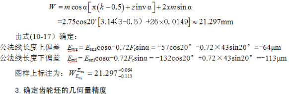 由于测量公法线长度比测量齿原方便,且测量精度相对较高,因此,设计时常常用给定公法线长度极限偏差方法来评定齿轮侧隙。公法线长度的上、下偏差
