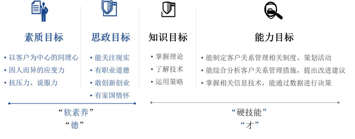 (一)总体目标:本课程旨在培养“德才兼备、软硬兼施、使命担当”的高质量应用型商务人才。