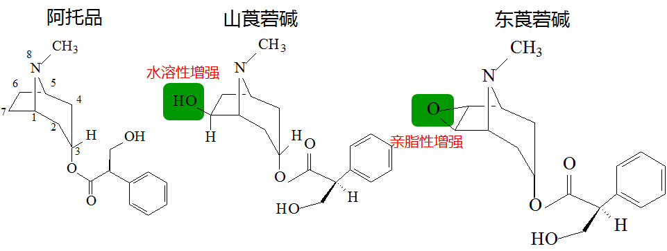 中枢作用:东莨菪碱>阿托品>山莨菪碱