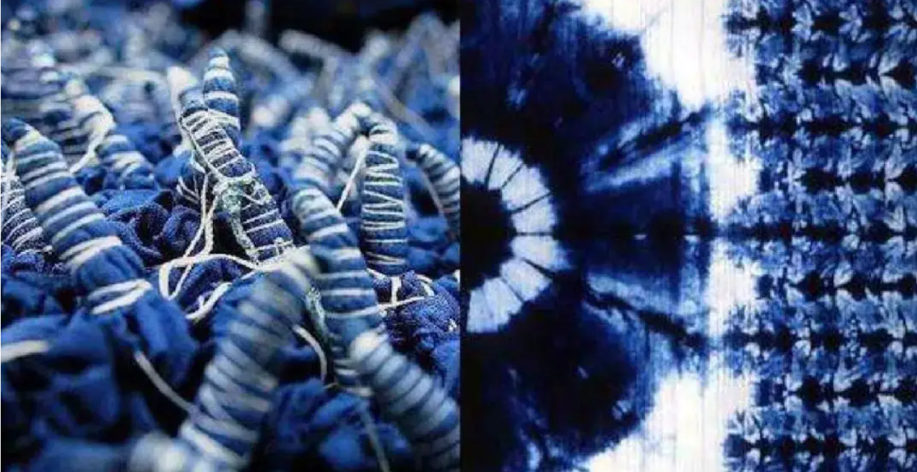 一块白布,给她扎一下,缝一下,放入染缸,打开——这是扎染