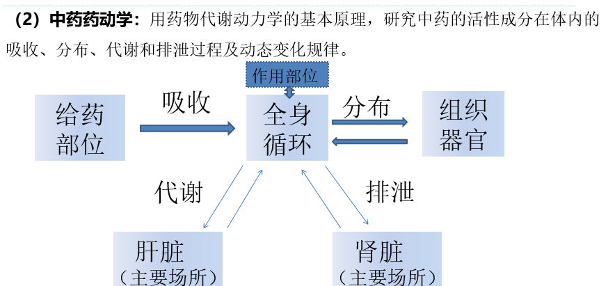 中药药理学的研究内容分为两部分,即中药药效学(药物效应动力学)和中药药动学(药物代谢动力学)。中药药效学是在中医药理论指导下,研究和揭示中药药理作用产生的机理和物质基础。中药药动学是应用药物代谢动力学的基本原理,研究中药的活性成分在体内的吸收、分布、代谢和排泄过程及动态变化规律。