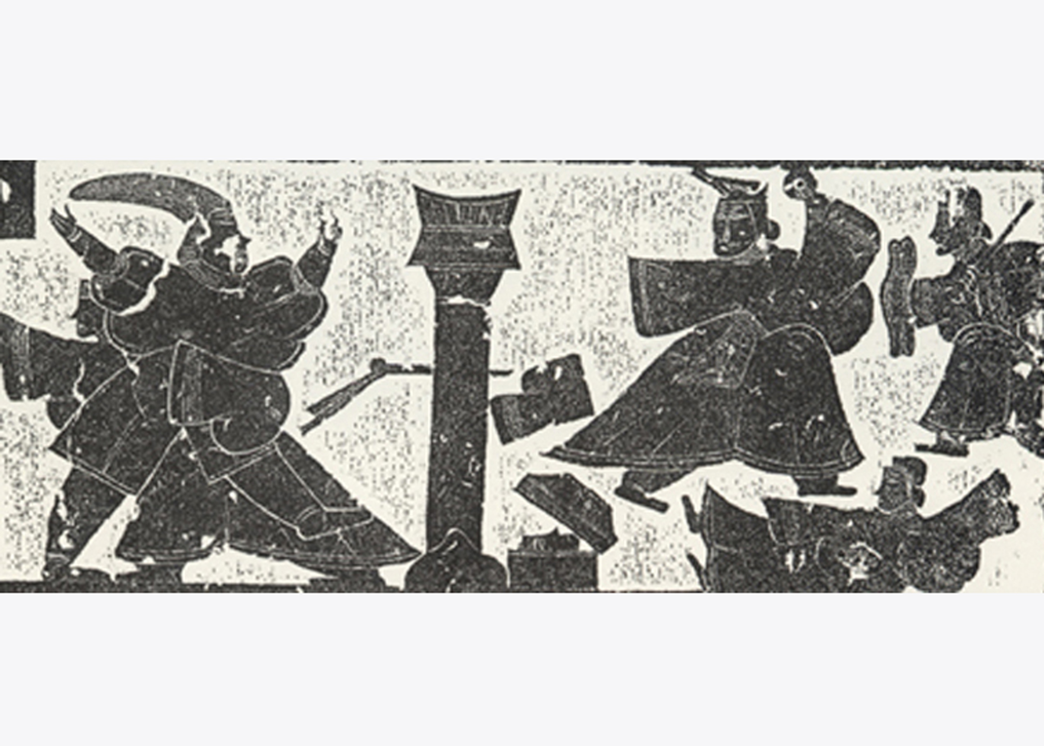 图3--25 荊轲刺秦王,山东嘉祥武氏祠左石室画像石