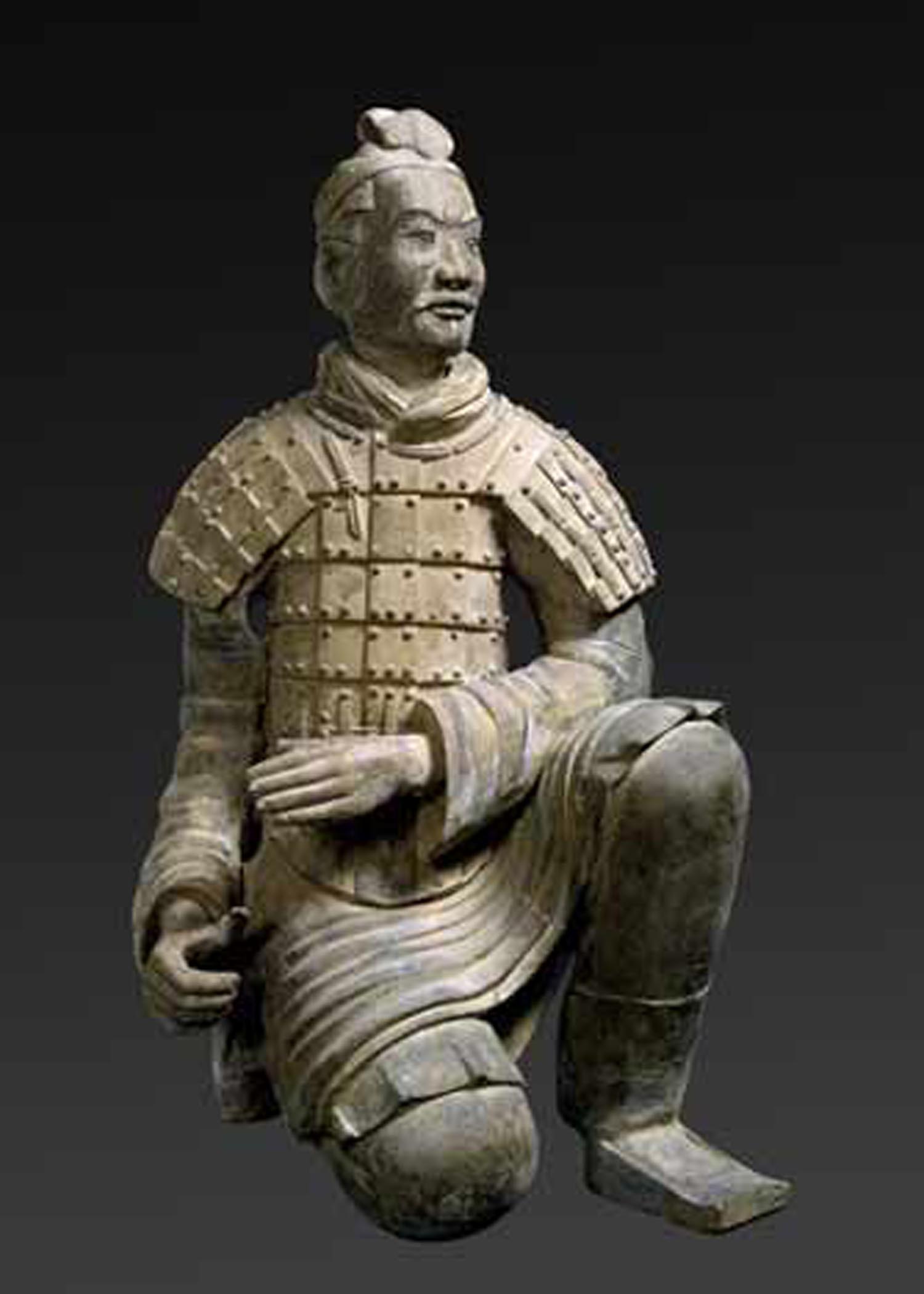 秦代最有特色的是陶塑作品,举世闻名的始皇陵兵马俑,一、二、三号俑坑出土了武士俑7000多件,“秦砖汉瓦”有不同风格:秦代风格淳朴,崇尚务实精神,汉代以形似求神似,这一创作理念在说唱俑上表现得淋漓尽致。