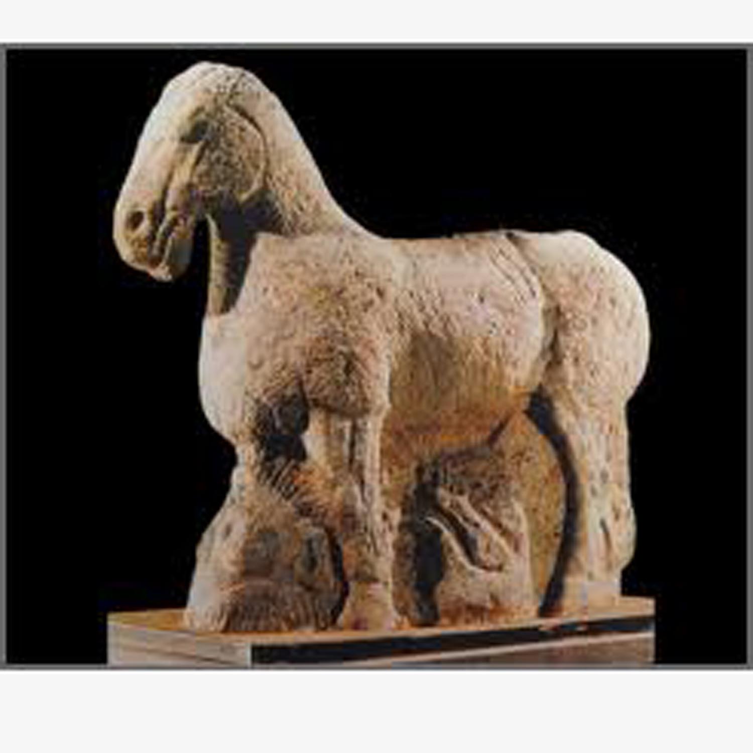 秦代兵马俑写实汉代霍去病墓石雕夸张变形,《马踏匈奴》是霍去病墓石雕群中最具代表性的一件作品,整石雕成,形式语言简练、夸张。汉代雕塑之美的内涵主要体现在意至而形不至。作于公元220年前后的《马踏飞燕》浪漫主义手法烘托了骏马矫健的英姿和风驰电掣的神情,给人们丰富的想象力和感染力。